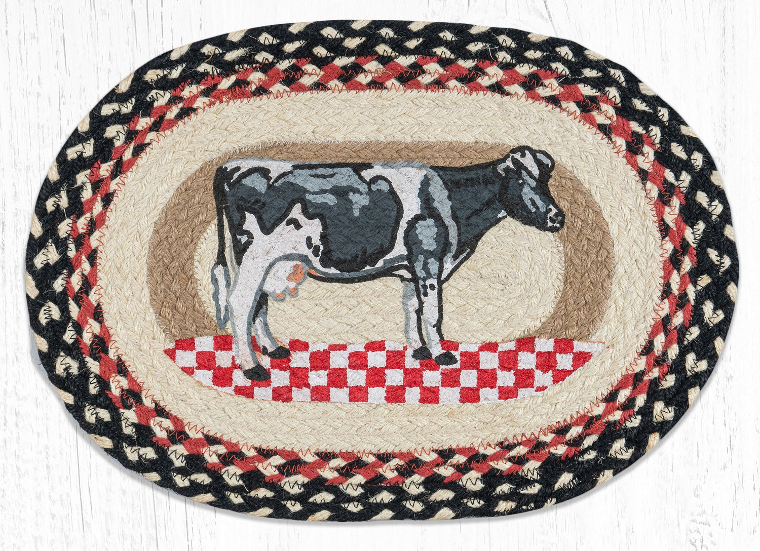 Add a touch of country charm to your dining table with our Checkerboard Cow Oval Placemat. The unique checkerboard pattern and cow design create a rustic yet modern look. Made with high-quality materials, this placemat is durable and easy to clean. Perfect for everyday use or special occasions.